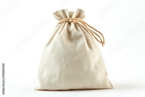 Cotton Sack Tied Closed with Jute Rope on a White Background
