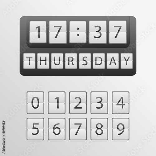 countdown timer, a mechanical scoreboard blank and various numerals. mechanical clock on digits board panel. Vector illustration