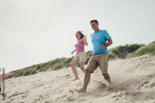 Couple Running Down a Sand Dune