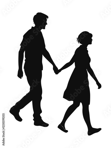 Couple Walking Hand in Hand Vector Silhouette