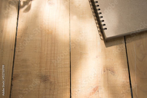 Cover Book on wooden table. top view angle