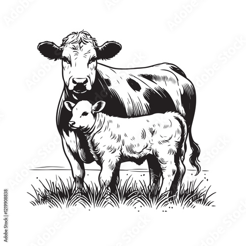 Cow and calf line art illustration