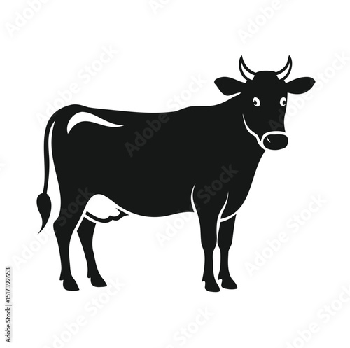 Cow Silhouette Icon Vector on White Background | Farm Animal Design