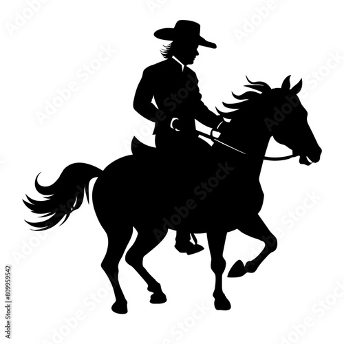 Cowboy on horse silhouette vector illustration isolated on white background.