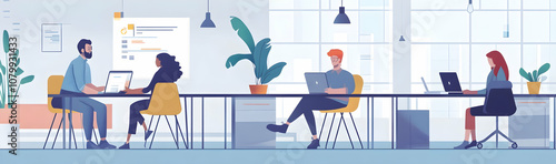 Coworkers collaborating on a project in an office environment -