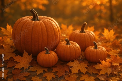 Cozy autumn harvest scene with organic pumpkins and golden leaves for seasonal marketing campaigns