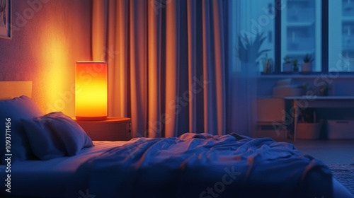 Cozy Bedroom Interior with Warm Lamp Light