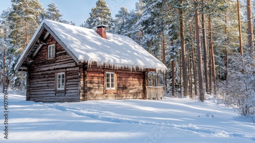 Cozy Cabin in a Snowy Forest.