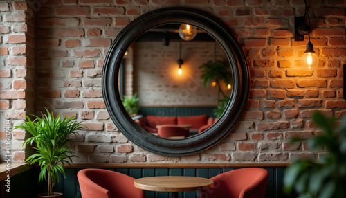 Cozy Restaurant Interior with Mirror and Plants