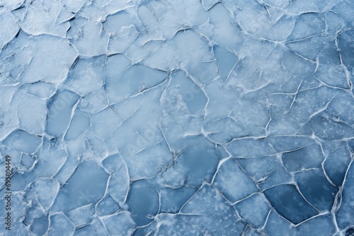 Cracks And Blue Ice Enhance The Surface Of A Frozen Lake