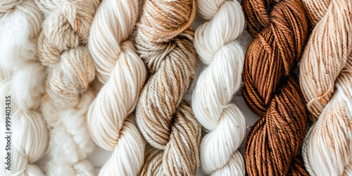 Cream and brown color Yarn Skeins with blur background