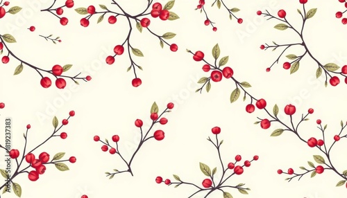 Cream background featuring a delicate, repeating pattern of stylized berry branches, soft, botanical