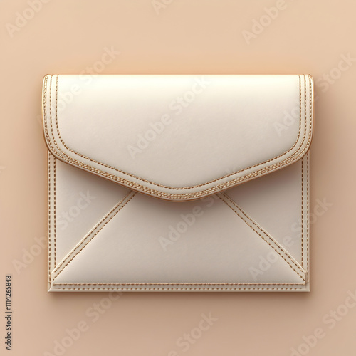 Cream envelope clutch bag, minimalist design, gold stitching.