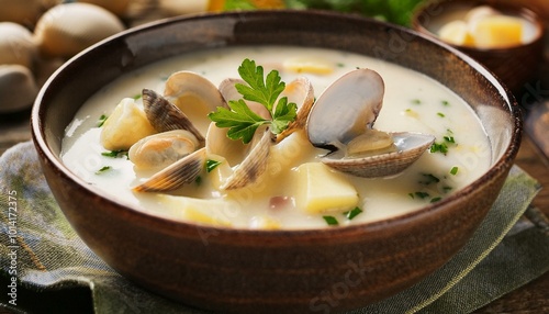 Creamy clam chowder in a bowl