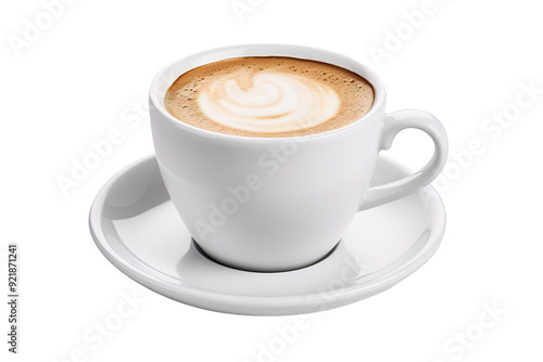 Creamy Hot Beverage in a White Cup With Artful Foam Topped in a Cozy Coffee Shop on White or PNG Transparent Background.
