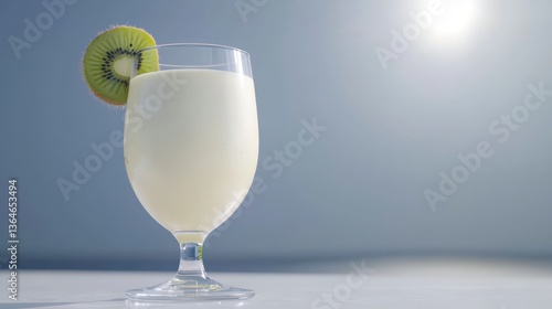 Creamy Kiwi Milkshake in Glass Refreshing Drink Photo
