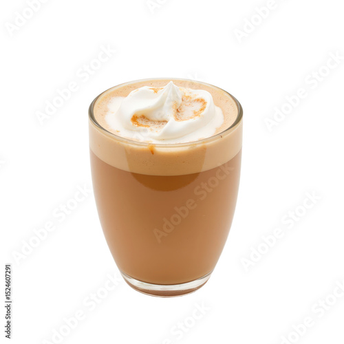 Creamy latte with whipped cream and cinnamon swirl, ready to enjoy, transparent background.