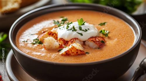 Creamy Lobster Bisque with Chunks of Lobster and Cream