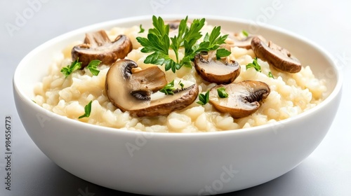 Creamy Mushroom Risotto in White Bowl