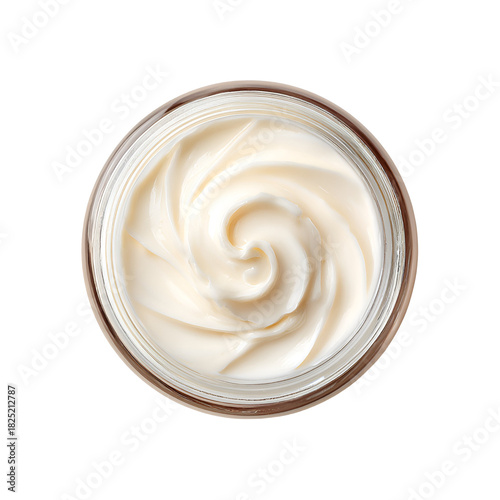 Creamy swirl texture in a jar top down view
