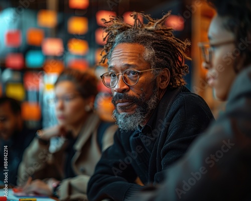 Create a high-quality photograph of a diverse group of colleagues brainstorming in a conference room.