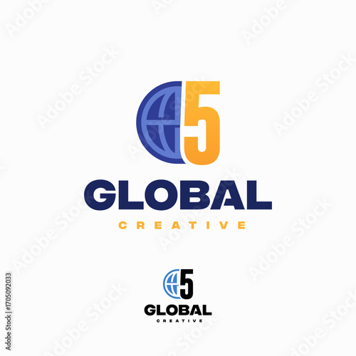 Creative 5 Number Globe Concept Logo Design Template, World Planet Logo designs template