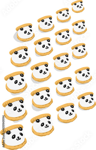 Creative biscuit cute pandas from cream
