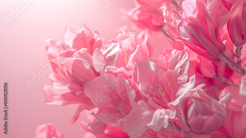 Creative composition of pink flowers and pink background Flowerscape flat lay : Generative AI