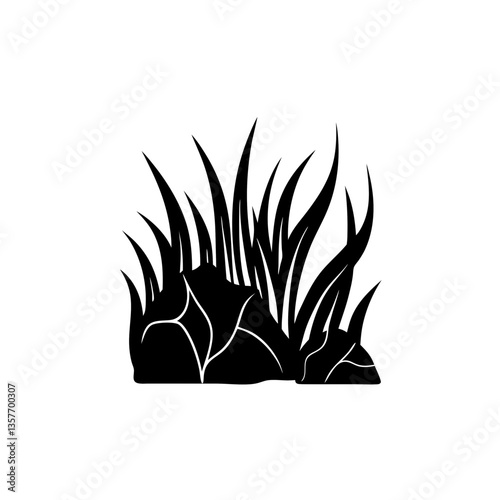 creative details Grass with Rocks Icon vector illustration