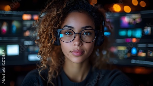 Creative team editing long-form videos on professional software in a modern studio setup with copy space