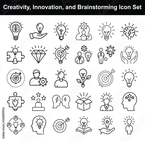 Creativity, Innovation & Brainstorming Icons – Ideas, Problem Solving, Lightbulb, Thinking, Vision & Strategy Vector Set