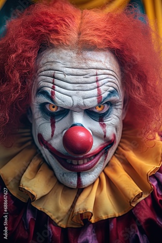 Creepy evil Clown. Horror poster design. Halloween concept. Generative Ai