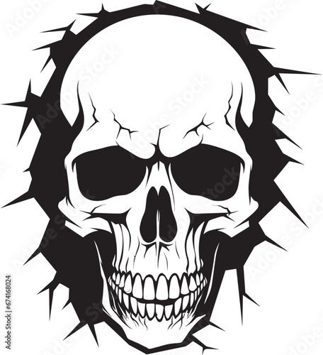 Creepy Skull Icon Unveiling from the Walls Depths Vector Skull Peering Through Cracks A Symbol of Mystery