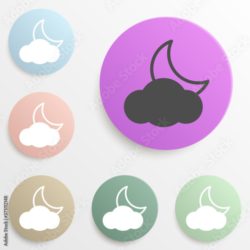 crescent behind the cloud badge color set. Simple glyph, flat vector of web icons for ui and ux, website or mobile application