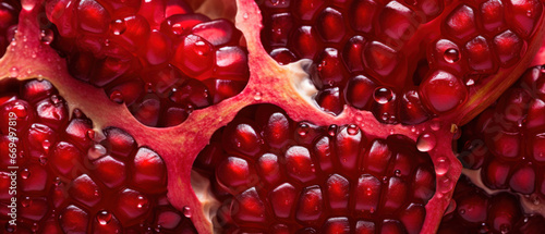Crimson pomegranate seeds captured in macro.