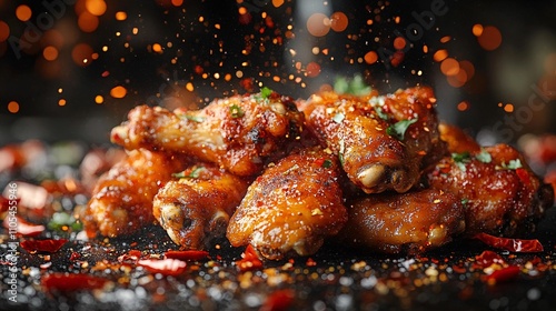 Crispy Chicken Wings with Spicy Seasoning and Garnish