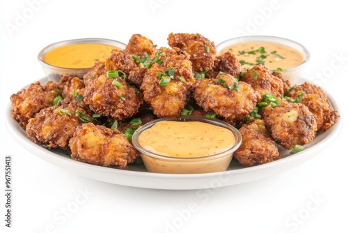 Croquettes fritas aperitif with tomato and mayonnaise sauce on a white plate with a gray background