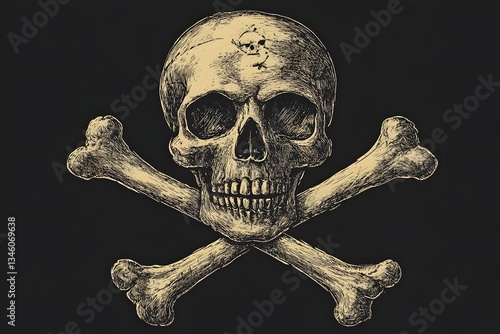 Crossed Bones Pirate Symbol Sketch Engraving Scratch Board Style Imitation