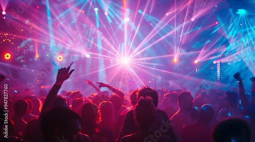 Crowd at a Music Festival with Laser Lights