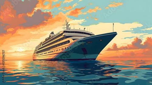 Cruise Ship Vector Illustration
