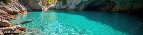 Crystal clear water plunges into turquoise basin, adventure, blue, breathtaking