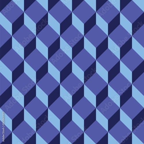 Cube pattern created from dark, mid and pale blue diamonds