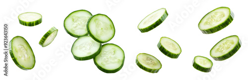 Cucumber slices isolated on a white background, in PNG format.