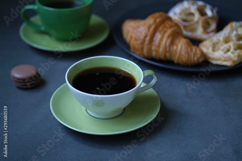 cup of coffee and cookies on table