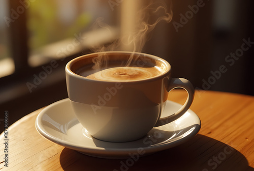cup of coffee on wooden table
