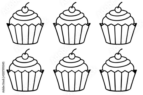 Cupcake Doodle Set Line Art Edition