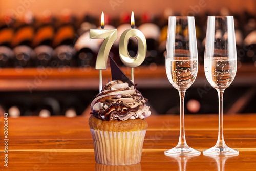 Cupcake With Numbers And Glasses With Wine For Birthday Or Anniversary