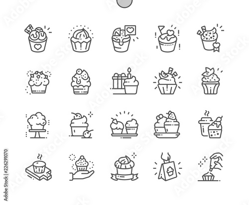 Cupcakes Well-crafted Pixel Perfect Vector Thin Line Icons 30 2x Grid for Web Graphics and Apps. Simple Minimal Pictogram