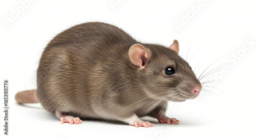 Curious Brown Rat Isolated on White