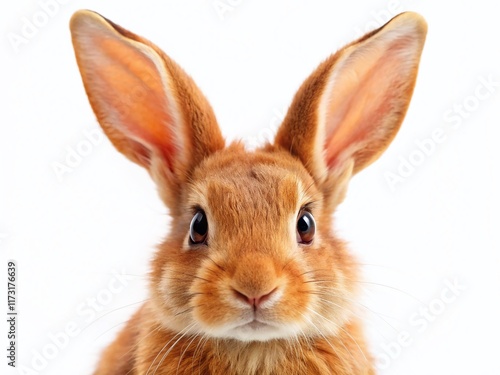 Curious Red Rabbit, Isolated White Background - High-Resolution Stock Photo